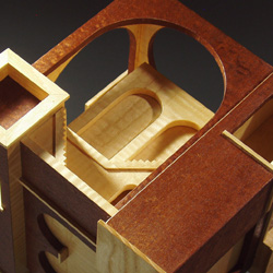 These are four sculpture boxes inspired by the artwork of M. C. Escher