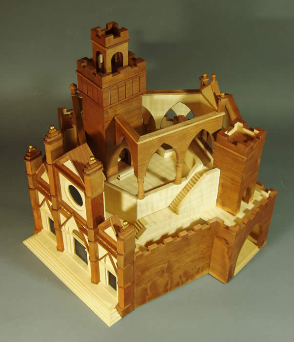 of both towers lift off. The woods are figured cherry and maple. 15”h – 15”w – 12”d.
