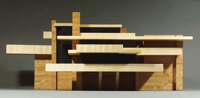 There is a compartment on each of the four levels of the house: a drawer pulls forward on each