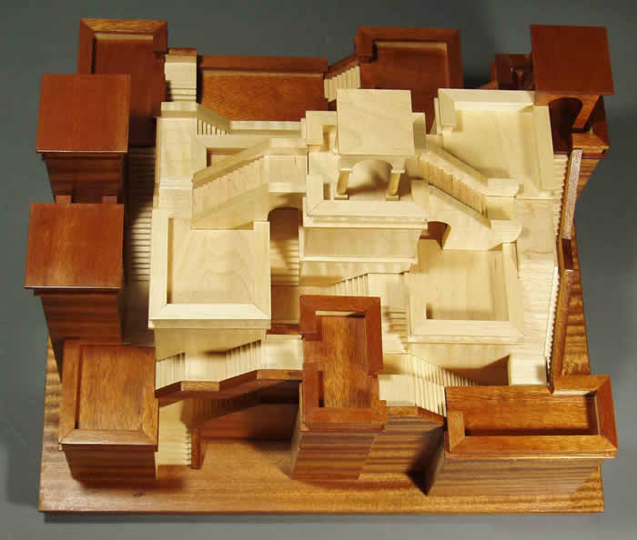 This is a view of the Maze from the top that gives more of an idea of the stairways and landings. The architecture, with its stairways and arches and pavilions is reminiscent of M. C. Escher.