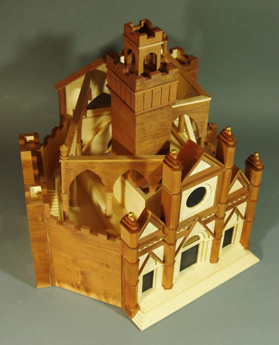 of both towers lift off. The woods are figured cherry and maple. 15”h – 15”w – 12”d.