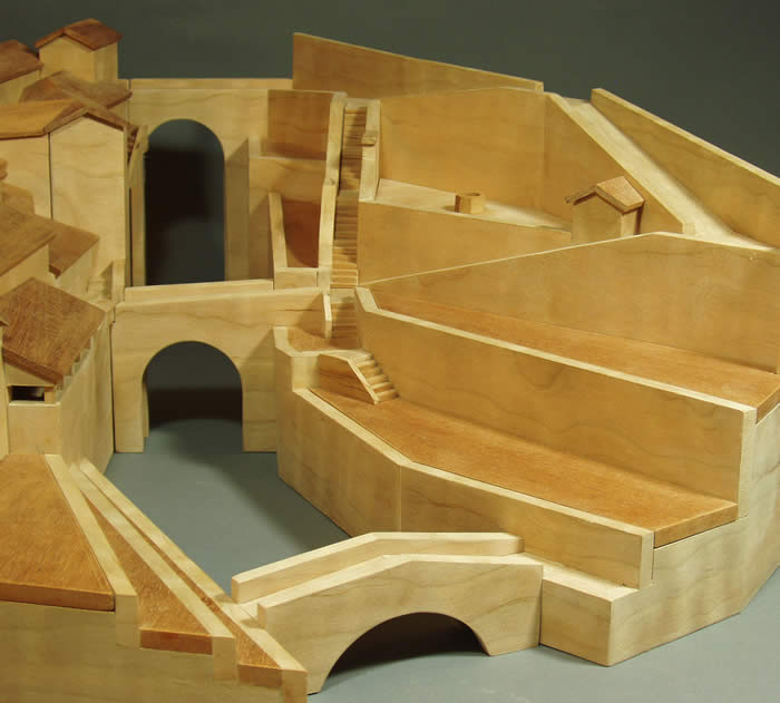 There are nine compartments in all – six within the buildings on the left and three beneath the terraces on the right.